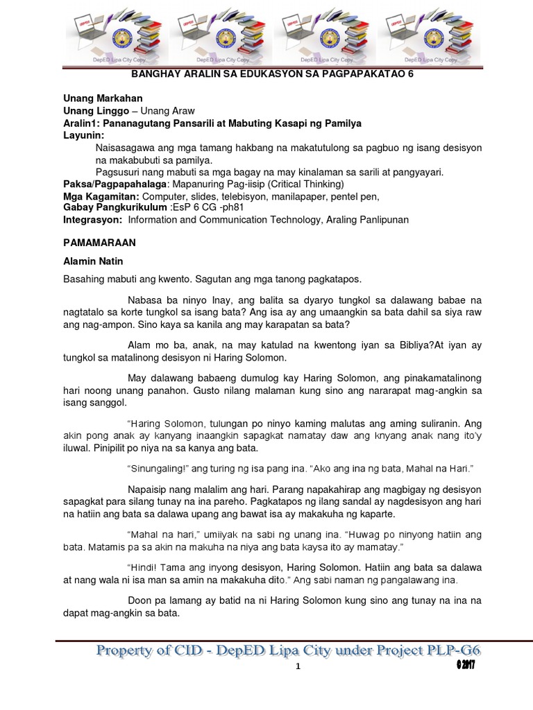Sumuri munang mabuti mabuti bago magbigay ng desisyon upang makagawa ng mabuting pagpapasya. Edukasyon Sa Pagpapakatao EsP Ikaanim na Baitang Alternative Delivery Mode Unang Markahan Modyul 1. Gawin ito sa iyong kuwaderno.