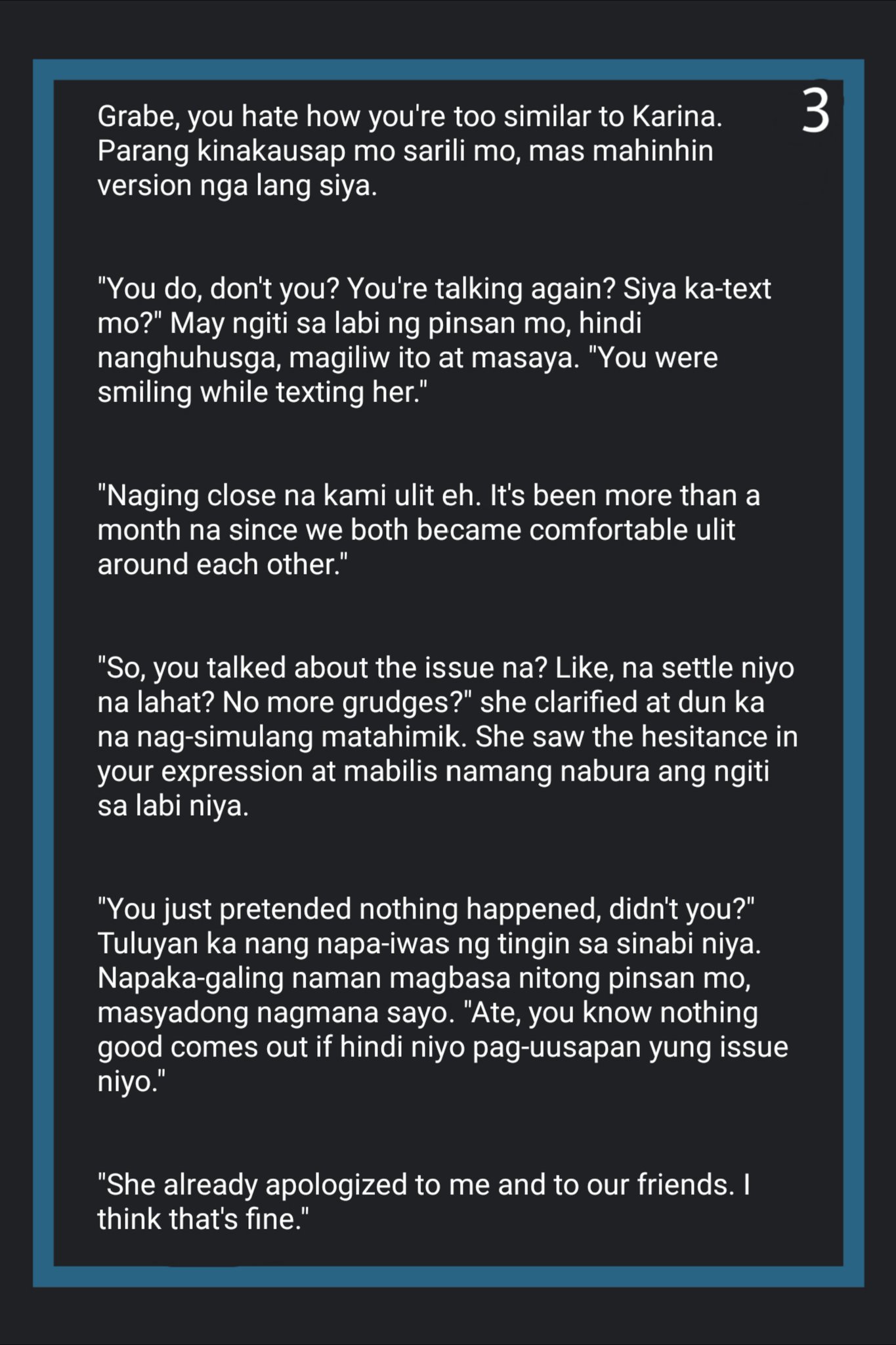Ang study time na ito ay ilaan mo upang balikan ang mga lessons na hindi mo naintindihan o minsan mag-advance study sa ibang susunod na lesson. At kung ilang oras kitang hindi nakita sa iyong upuan ay ganon ding haba ng oras ng aking pagiyak sa likod ng silid. Pag hindi ka nila.